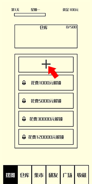 2、当然新档暂时没有材料,那我们先点击集市购买原材料