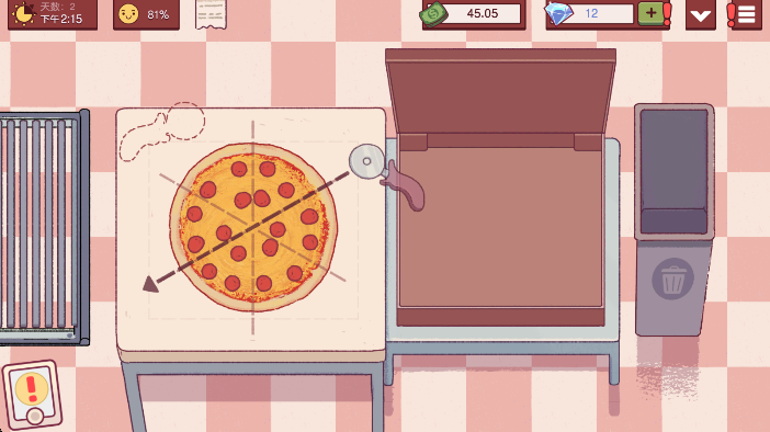 可口的披萨国际服是一款沉浸式模拟经营手游,你将经营一家只在白天营业的披萨店。游戏中会有各式各样的顾客带着不同的要求光临,你需要根据订单制作出符合他们心意的披萨,赢得好评与回头客。披萨店只在白天经营,但在这段时间里,不断会有街坊邻居慕名前来买披萨,他们都会提出自己的要求,而你就需要又快又好地根据他们的要求制作披萨,这样不仅可以获得客户的好评,还可以完成更多的生意。