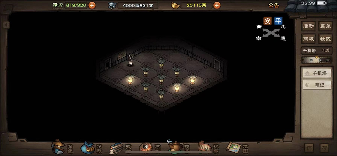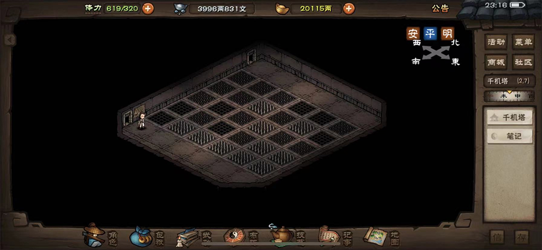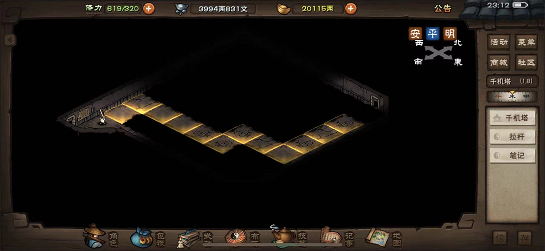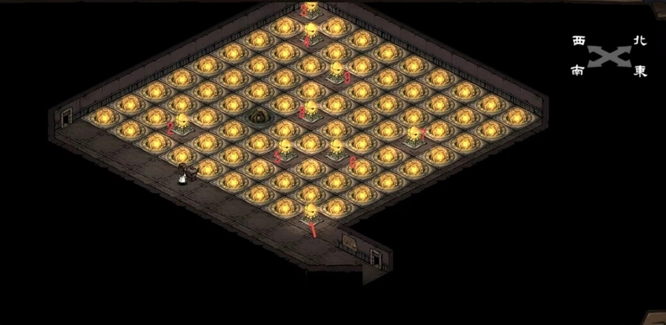直接从南岭进入密室,在(10,12)启动拉杆开启机关