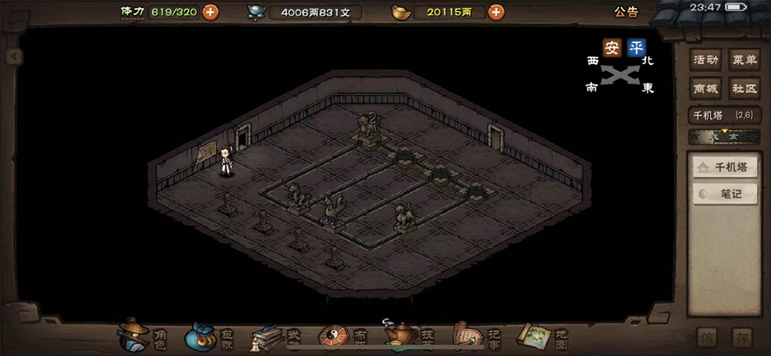 最后三个方向都有佛像,则走到路口中间的洞上,触发战斗,打败两个守护傀儡(至少需要有通关副本墨门遗迹的实力),来到墨门密室。