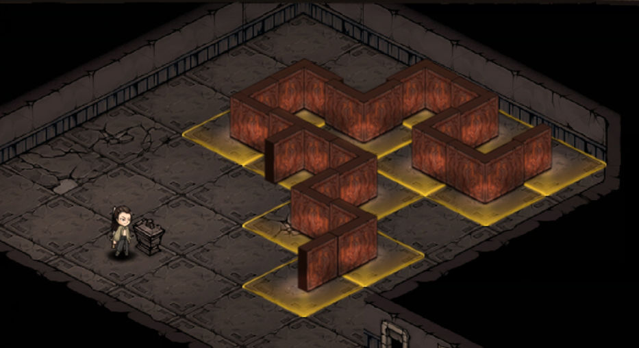不能踩到亮灯的格子,并且当角色经过一个格子后,该格子才会发亮。初始会有一些发亮的格子,相当于障碍物。同样类似于一笔画。