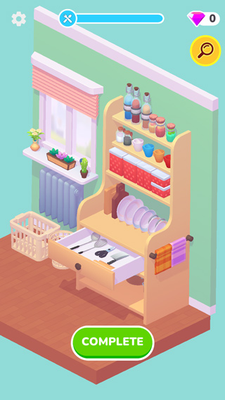 不确定你要打开的东西应该去哪里?点击放大镜,游戏的帮助功能将向您展示存放每件物品的最佳位置,以最大限度地保持整洁和方便