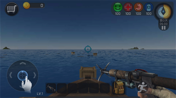 2、海上有各种资源,对准目标,长按右侧射击按钮,将物品拉回来;
