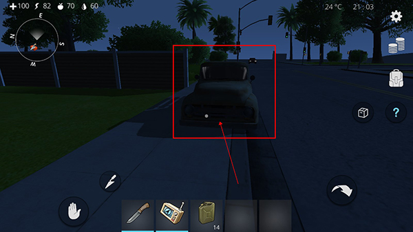 7、皮卡也需要燃料,随身携带即可。对准汽车引擎盖时,按“使用”按钮打开特殊菜单。通过此菜单,你可以修理汽车,最重要的是给汽车加油。