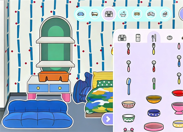 增添了带有波点图案的餐具,特别是勺子和叉子,细节处尽显活力和趣味。