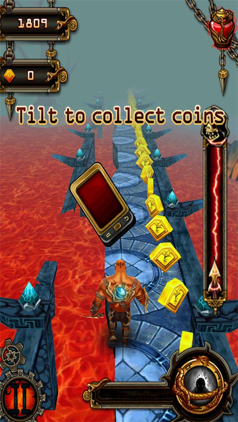 2、挥击转弯、跳跃、滑动躲过障碍物,收集硬币,购买能量,看看你能跑多远!