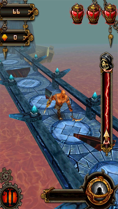 1、游戏的操作很简单,采用重力感应和划屏触屏结合的操作方式,在跑酷类型中加入全新动作元素,打击感、速度感与操作感并重,可以进行爽快连贯的多段打击。即使前路有骷髅和死神阻挡又如何,只要追上了,抓住他,一样可以撕成碎片;