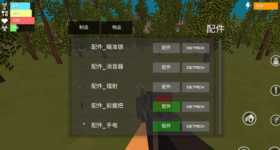 2、在军事基地中拿到手电、把柄等武器配件之后,我们点击背包中的武器,就会看见下方出现“附件”选项。