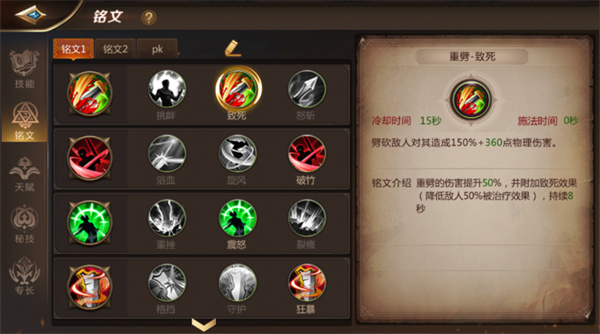铭文和天赋也是新手玩家关心的问题,我也在这里说下。战士打团本铭文就第一排,有可能有些群伤boss需要你的铭文格挡换成守护。格挡是单体守护是群体。按我们游戏里的话就说给绿盾给团队加防御。