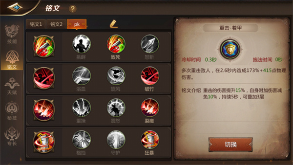 这里最后一排的重碾可以换成剑刃精通。