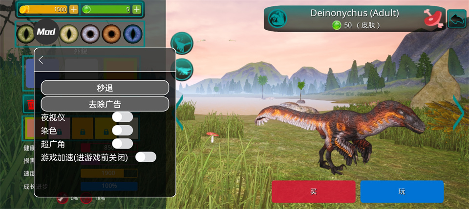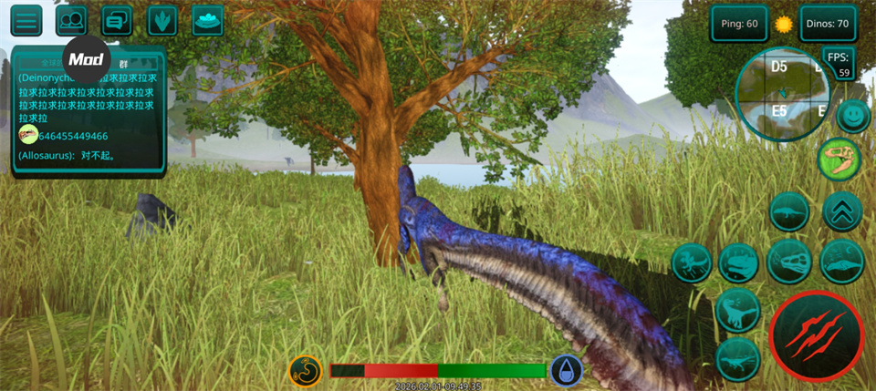 请记住 - 这是您个人的恐龙!在恐龙游戏中,不仅有肉食性恐龙和草食性恐龙,还有会飞的恐龙,例如翼手龙,玩家可以与自己物种的食肉动物联合成群,以抵抗其他物种,最重要的是,生存!
