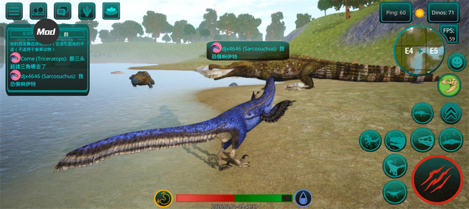 如果恐龙是掠食者,那么你需要杀死其他玩家的恐龙才能得到自己的肉,如果你是草食动物,那么食物就更容易了,你需要特殊的蕨类植物,你可以得到足够的他们! 地图上任意湖泊、水库都可以饮用。