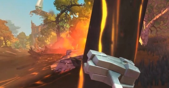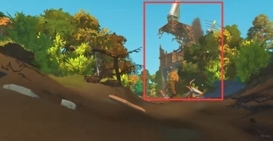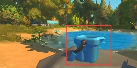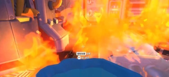 2、将水桶灌满水,然后来到出生地,左边有一个着火的飞船,用水桶去灭火。
