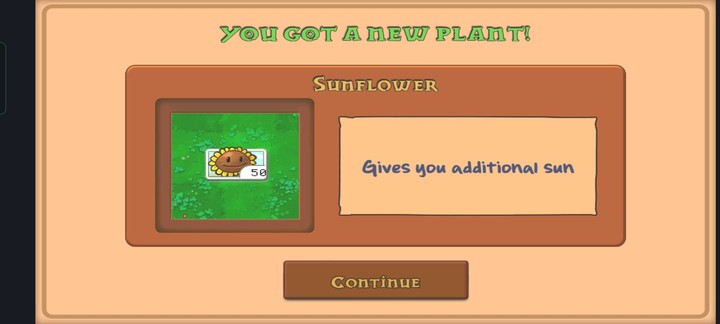 4、当你收获到向日葵时,就代表着通关成功,点击【continue】