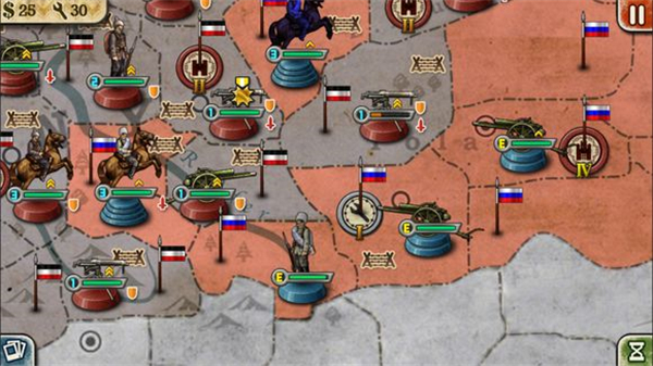 2、第一天,在华沙和波兰西南角的一级工厂里造3门大炮(华沙1门,西南角2门),先用西南角的大炮轰一下旁边西里西亚的德国步兵(要打到他掉一大半血,否则重来),华沙的大炮轰波兰西北角的德国机枪兵
