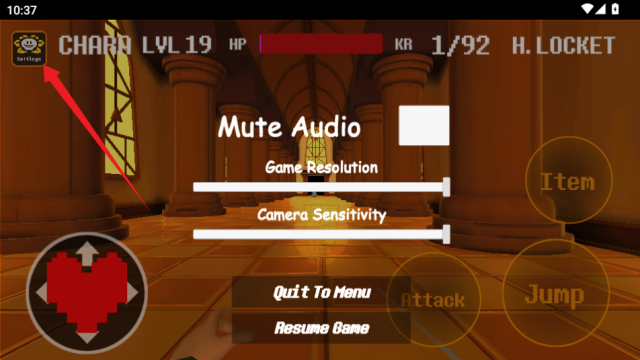 5、点击左上角“Settings”按钮打开设置菜单,可调节“Mute Audio”“Game Resolution”“Camera Sensitivity”等参数。