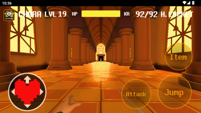 3、进入第一人称战斗场景,屏幕左下角为移动控制杆,右下角为“Attack”“Jump”“Item”操作按钮。