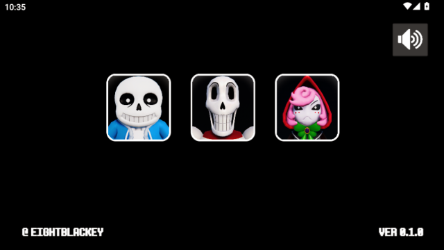 2、角色选择界面,从三个角色中选择其一(左起:Sans、Papyrus、Undyne),进入游戏关卡。