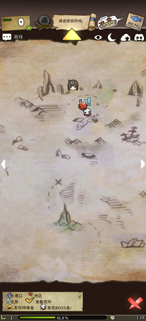 Auto:地图旁的Auto当你在天赋里升级自动导航技能就能解锁,后期放置获得珍珠天赋的必要途径。左下角的Auto是升满自动钓鱼后解锁的按钮