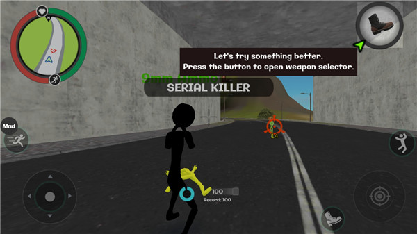 左侧移动、加速,右侧绳索,攻击(跳跃),跳跃,右上侧的武器更换以及血量、经验的显示都实时更新,一览无遗,凭借着大家自由的玩法,与其他帮派的人物进行交火,期间杀人能够获得经验,杀多了会产生星级,警察和其他附近角色会特殊照顾你对你展开火热的进攻,而如何存活,如何将其他人物击杀则是你所需要完成的任务。