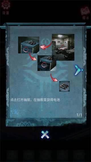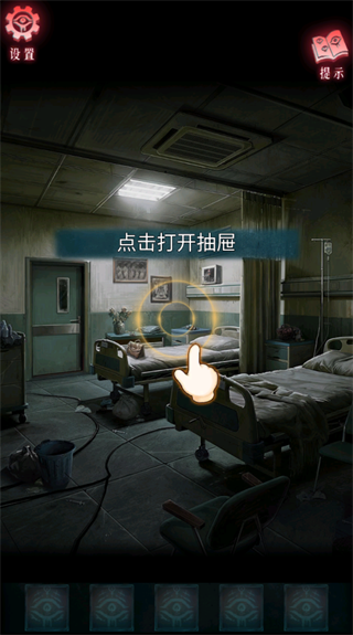 点击场景中的发光点、物品、抽屉等进行互动,收集道具、纸条、数字线索。