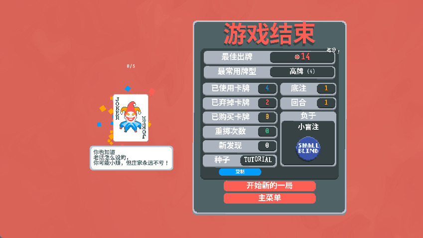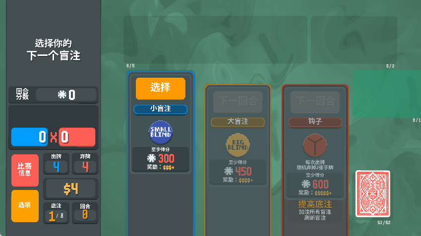 1、在小丑王的对局中,玩家的核心目标是不断积累筹码,用实力击败场上的盲注对手。