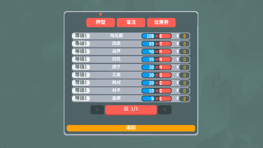 滑稽小丑:如果出牌包含同花,+ 10倍率。