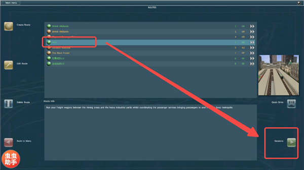 8、然后返回【ROUTES】页面,找到刚才保存的地图,点击右下角【Sessions】进行游玩。