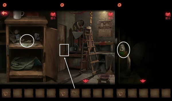 11、根据纸上圈出来的字,解开机关,打开地下室的门。