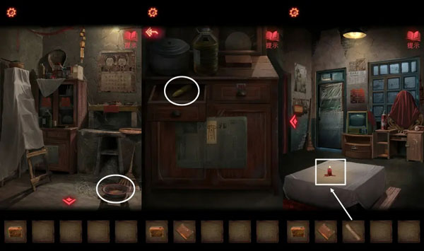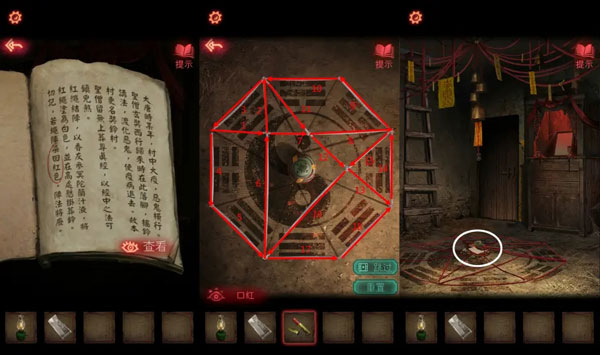 13、根据神龛上的书的描述,用【口红】点击坛子,将绳子涂红,碎掉的坛子上拿到【半张照片】。
