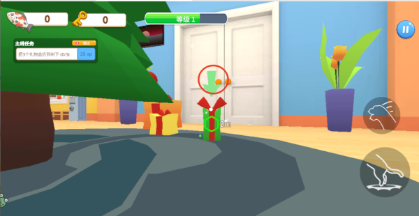 2、点击任何地方扔掉家里的礼物,操作起来十分的简单,在家里四处穿梭。