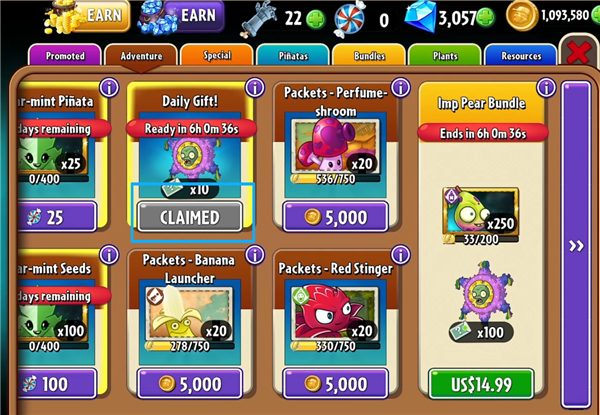 可以在商店使用钻石直接购买植物碎片,建议在竞技场打到最高段位翡翠杯的时候再买,这样可以100钻石买到260个碎片。