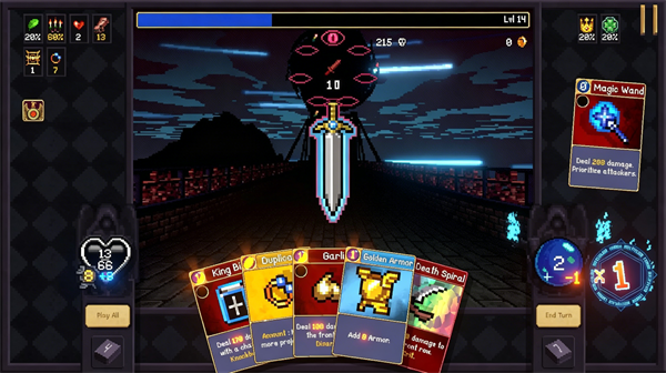 你会在屏幕的右上和左上角看到带有百分比的图标,代表角色的不同属性。这些属性可以增强你的角色能力,例如初始伤害、卡牌抽取数量、投射物等。