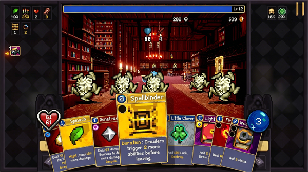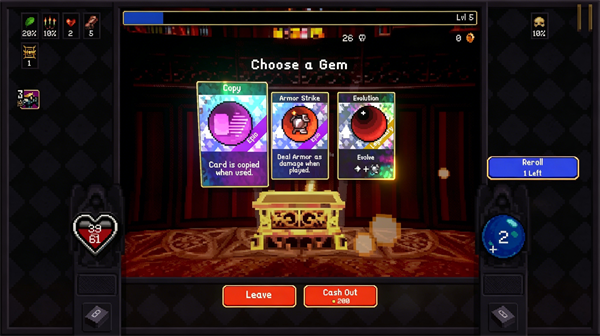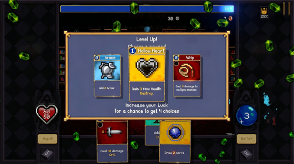 卡牌与宝石的区别:比如“护腕”(Bracer)仅增加本场战斗的手牌上限,而“三叶草”(Clover)则永久提升幸运值。