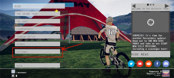 1、首先打开速降王者手游后,进入游戏页面点击SETTINGS,如下图所示位置;