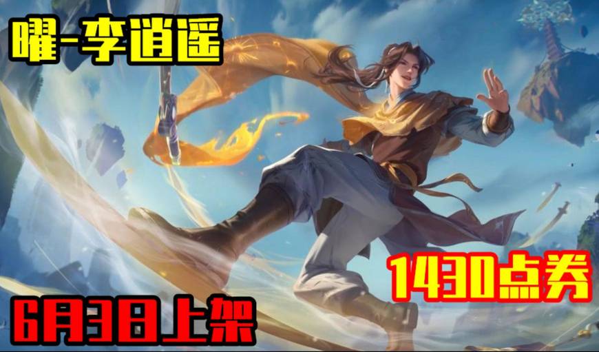 曜-李逍遥皮肤的海报、建模、局内特效已经曝出,这款王者荣耀与仙剑奇侠传联动的限定传说皮肤将于6月3日上架,首周折扣价格为1430点券。