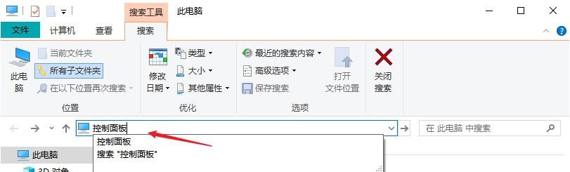 步骤1:打开电脑桌面上的此电脑,在搜索栏中输入“控制面板”,然后按回车进行搜索。