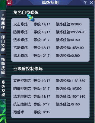 修炼也是一点一点补起来的,玩了好久还是这个样子,修炼奉上。