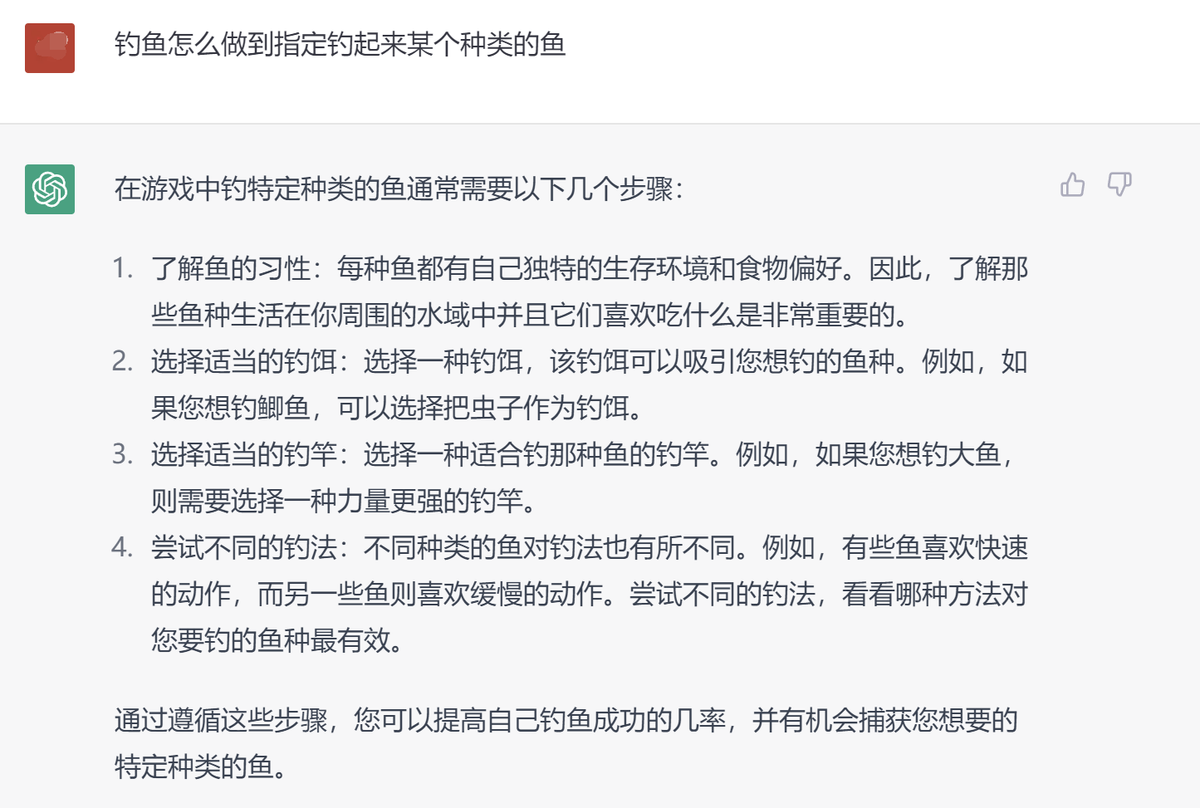 不过真的会有“永不空军”的钓鱼佬吗?其实在某种情况下是可以的,那就是在游戏世界里。不过直接问钓鱼游戏可能会出现不少打金币的捕鱼游戏,这里教大家一个小技巧,可以问“自然系垂钓手游”,chatgpt的回答都是英文,我在其中找到了一款有国服的手游《钓鱼大对决》,在TapTap和APPStore都能下载。