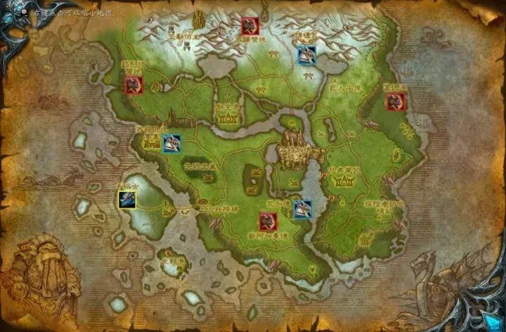 地图内共有8个飞行点,部落(4),联盟(3),中立(卡玛古),位置如下图所示