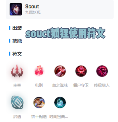 在EDG对阵LGD的第二场比赛中,中路为scout的狐狸对阵Jay的妖姬,狐狸对妖姬可以说是非常贴近排位的对线了。而在这局比赛中,scout的狐狸在主系选择电刑之后,点出了血之滋味、僵尸守卫与终极猎人,副系则是点出了启迪系的时间扭曲补药加上饼干的药王组合。
