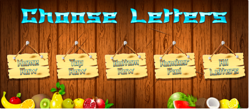 Home row 中间行,Top row 上面行, Bottom row 下面行,Number pad 数字,All letters 全键盘。这样可以根据课程进行不同区