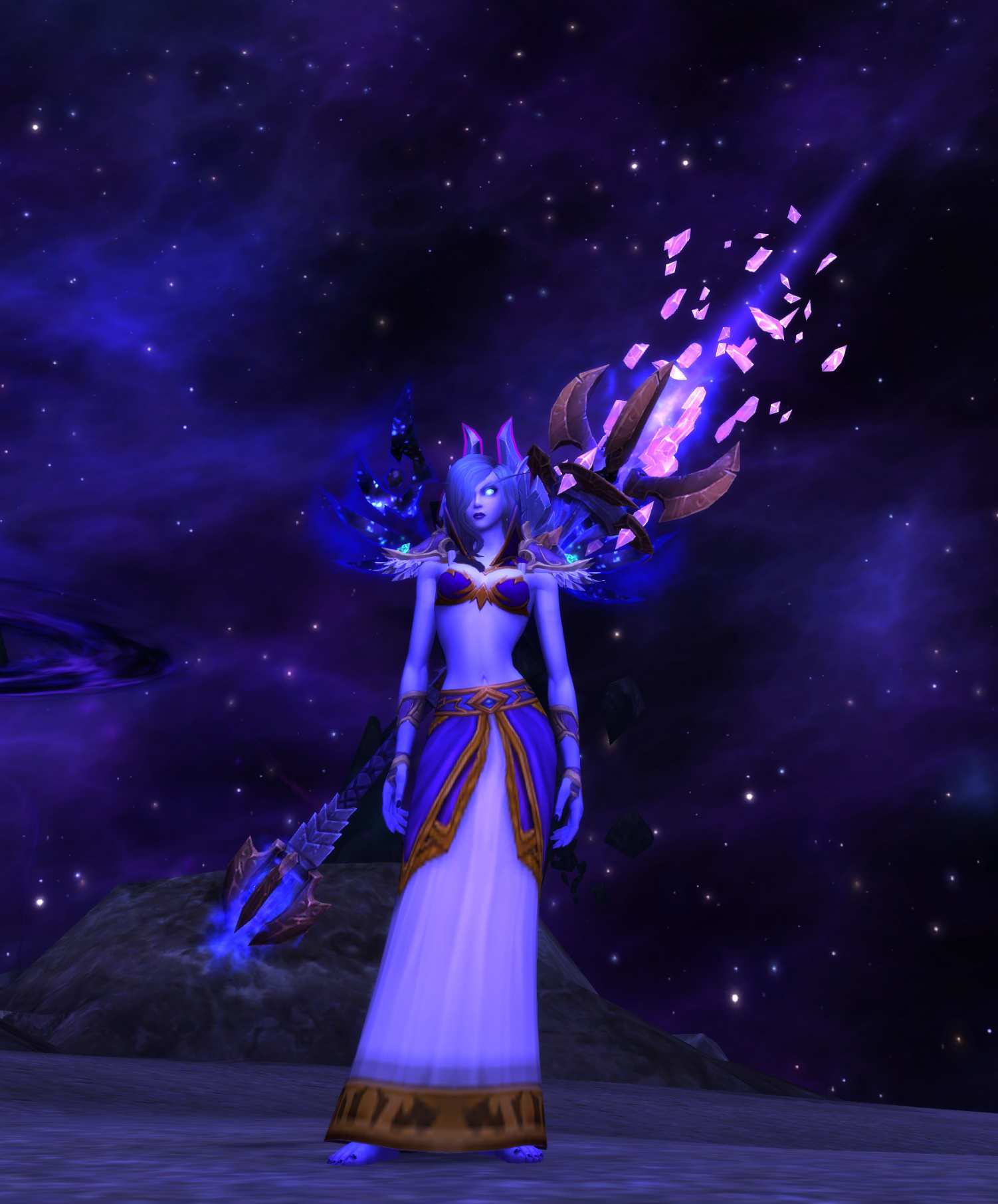 自从8.1,我的小战士转了虚空精灵后,腰不酸了,腿不疼了,冲锋也不会释放了!紧接着趁着优惠活动,把账号里所有可以转虚空精灵的职业都转成了虚空精灵小姐姐,目前已经沉迷于小姐姐的绝代风华而无法自拔。
