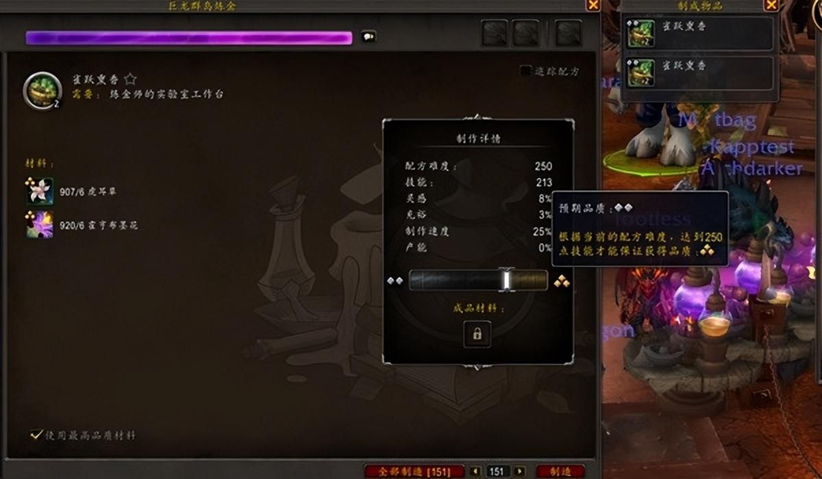 配方:雀跃熏香则需要马鲁克半人马名望等级22在军需官胡森处购买,需要巨龙群岛炼金(50)才能学习。