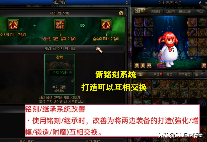 现阶段游戏中,铭刻系统这个功能,只可以把低等级打造,转移到高等级上面。但27号韩服调整后,低等级的打造,也可以铭刻到高等级上面。