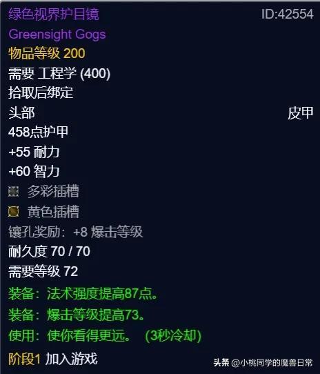 工程护目镜一直是玩家成为工程师的首要原因,WLK并没有让人失望。如装甲泰坦神铁护目镜、外观液化护目镜和弱点分析眼镜起码会在raid前装备中保持竞争力。像往常一样,这些护目镜仅在拾取时绑定并且需要工程 (400) 才能使用。