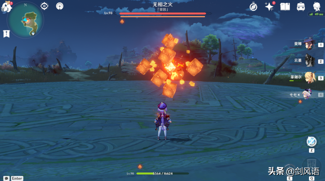 (2)龙卷技能释放后,会形成若干元素晶球,用温迪、刻晴、钟离等角色,飞起来吃掉10个元素晶球,获得成就【千风散尽还复来】,一次吃不够10个,先不击败,等它释放第二次元素晶球。