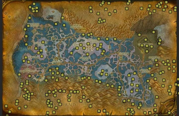 赞加沼泽有大概有200多个采集点,好多接壤虚空风暴,地狱火半岛,纳格兰的交界处