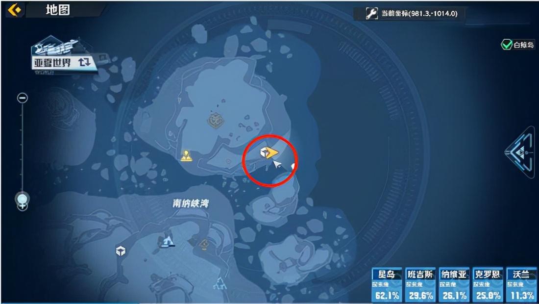 克罗恩卢米纳号右边岛屿,坐标为(986.3,957.4)。