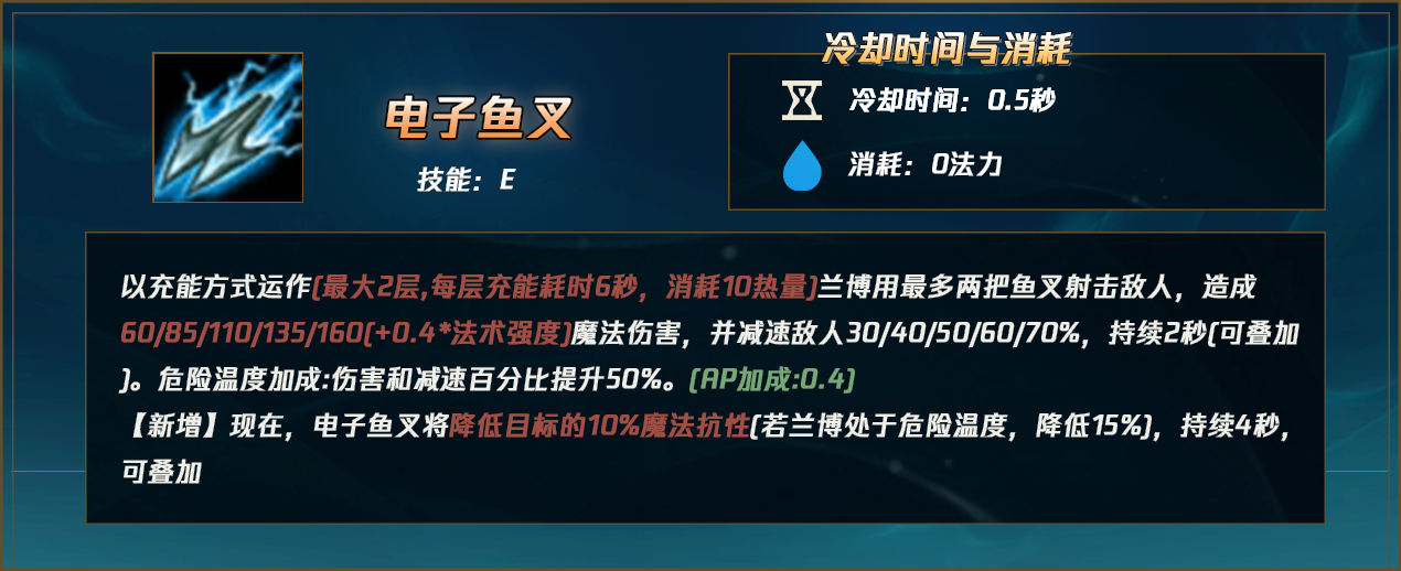 E技能危险温度加成:伤害和减速百分比提升50%。